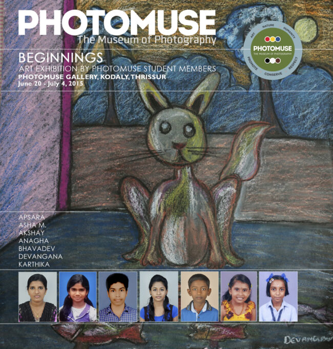 Art Exhibition by PhotoMuse Student Members PhotoMuse invites all of you for an exhibition of paintings by PhotoMuse Student Members at PhotoMuse Gallery, Kodaly, Thrissur. The show runs from December 12 – 31, 2015. Congratulations to all our young buddies! VenuePhotoMuse Gallery, Kodaly, ThrissurDateDecember 12, 2015 to February 15, 2016EntryFree