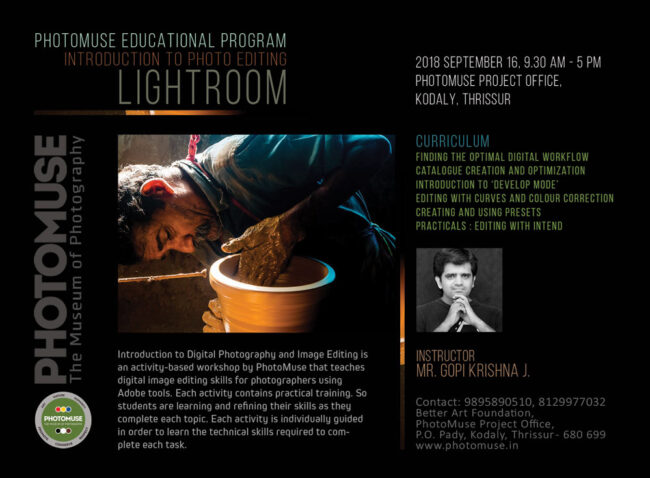 All are welcome…. VenuePhotoMuse Gallery, Kodaly, ThrissurDate2018 September 9, 4 p.m. to 6 p.m.EntryFree