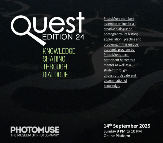 PhotoMuse members assemble online for a creative dialogue on photography – its history, appreciation, practice and problems. In this unique academic program by PhotoMuse, each participant becomes a mentor as well as a student through discussion, debate and dissemination of knowledge. Date: 2025 August 30 Time: 09 PM to 10 PM