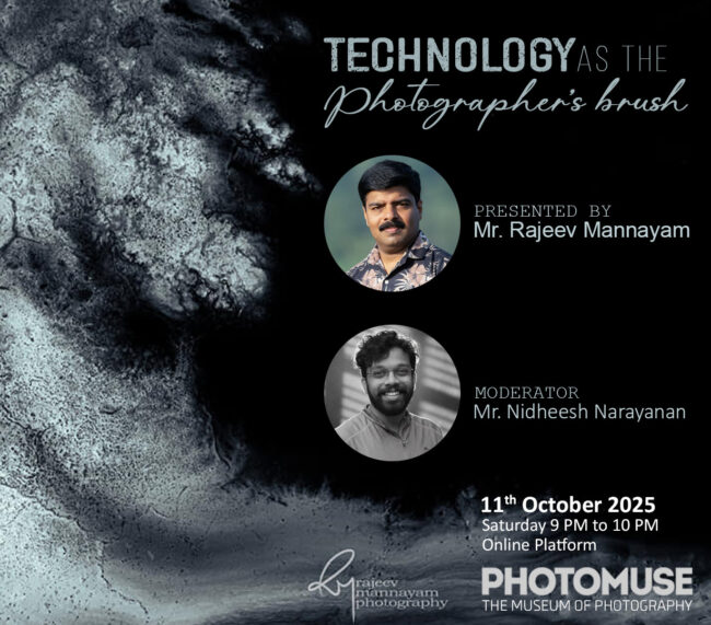‘TECHNOLOGY AS THE PHOTOGRAPHER’S BRUSH’ The topic Presented by Mr. Rajeev Mannayam Date: 2025 October 11 Venue: Online Time: 09 PM to 10 PM