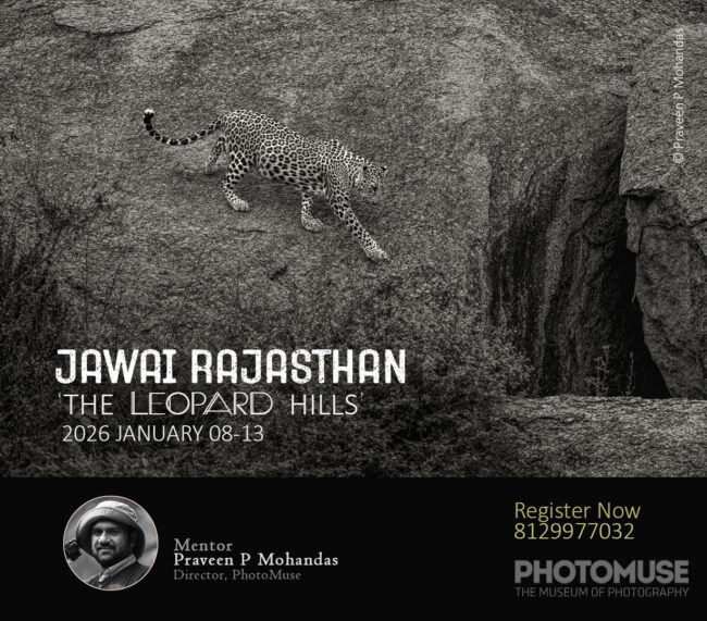 JAWAI RAJASTHAN – ‘THE LEOPARD HILLS’ 2026 JANUARY 08-13 Mentor: Praveen P Mohandas (Director, PhotoMuse) Book your seats now! 8129977032