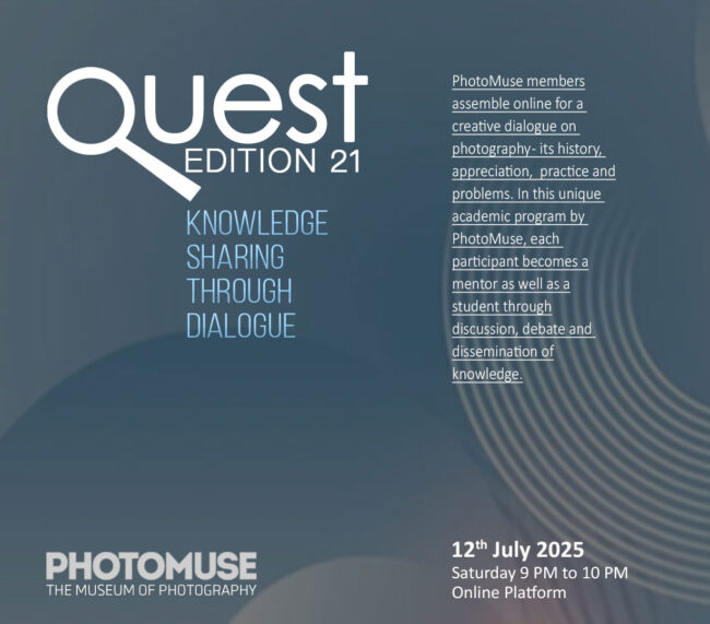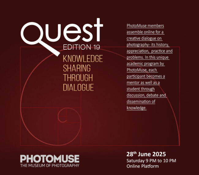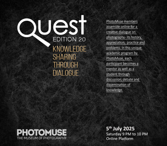 PhotoMuse members assemble online for a creative dialogue on photography – its history, appreciation, practice and problems. In this unique academic program by PhotoMuse, each participant becomes a mentor as well as a student through discussion, debate and dissemination of knowledge. Date: 2025 July 05 Time: 09 PM to 10 PM