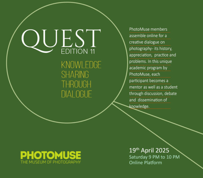 PhotoMuse members assemble online for a creative dialogue on photography – its history, appreciation, practice and problems. In this unique academic program by PhotoMuse, each participant becomes a mentor as well as a student through discussion, debate and dissemination of knowledge. Date: 2025 April 12 Time: 09 PM to 10 PM