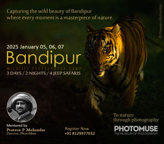 Wildlife photography camp at Bandipur Mentor: Praveen P Mohandas Date: 2025 January 5, 6, 7 For registration: 8129977032