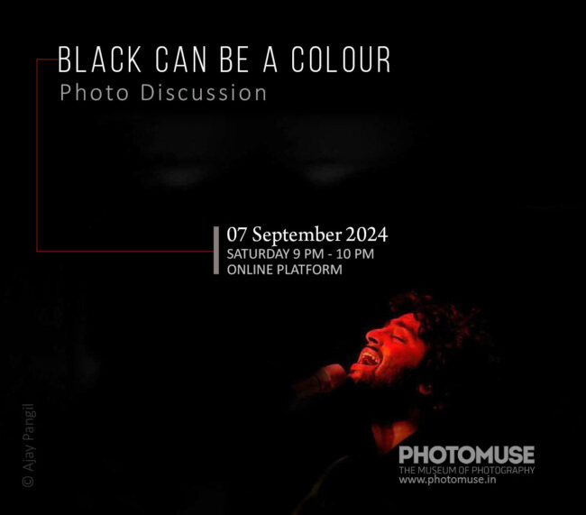 PhotoMuse museum presents an online discussion based on photographs interpreting the idea of ‘Black can be a colour’. Date: 2024 September 7, Saturday Time: 09 PM to 10 PM